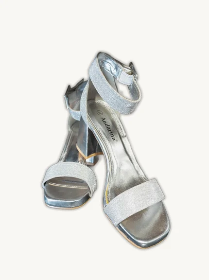 Zapatos de Fiesta Plata Brillante Tacón Ancho | Números 36 al 41