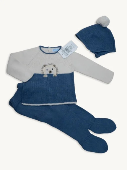 Conjunto Bebé Lana 3 Piezas Azul Crudo | Erizo | Tallas 0 a 12 Meses