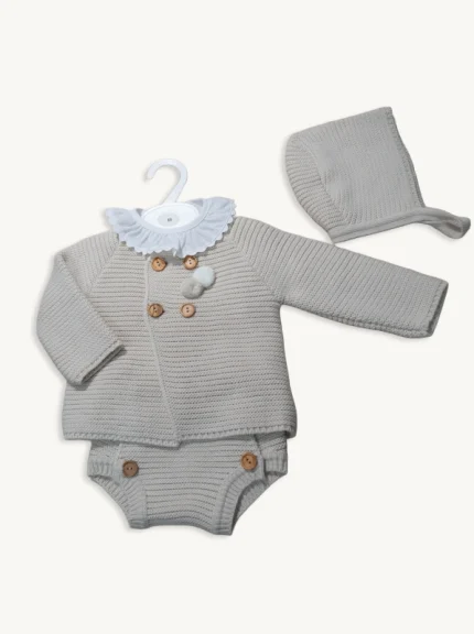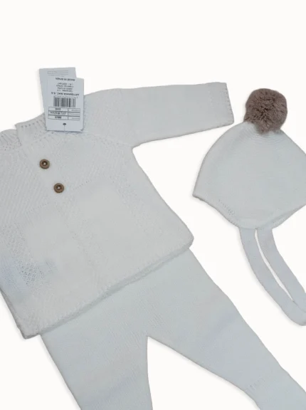 Conjunto Bebé Lana Cruda 3 Piezas (Jersey, Polaina, Gorro) | Tallas 00-12M