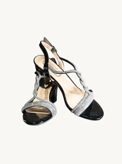 Zapatos de fiesta negros con pedrería y tacón cómodo para mujer