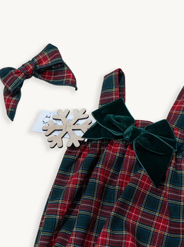 Ranita Bebé Navidad Tartán Rojo y Verde | Conjunto Bebé Cuadros Lazo
