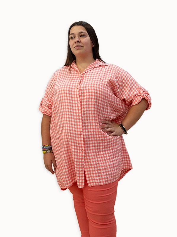 Conjunto Chic Coral – Camisa Vichy y Pantalón Elástico