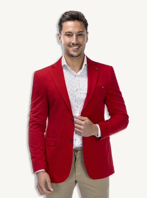 Americana Vértice en vibrantes colores (azul celeste, rojo, melocotón, amarillo mostaza), ideal para gente joven.