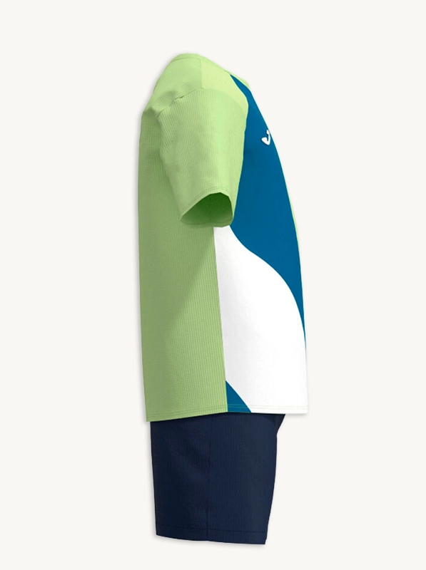 Confeccionado en 100% poliéster, este conjunto ofrece un tejido transpirable, duradero y fácil de cuidar, ideal para climas activos y juegos sin pausa. El diseño sublimado, en tonos verde, blanco y azul, aporta un estilo moderno que acompaña el ritmo dinámico de los niños.
