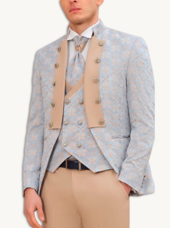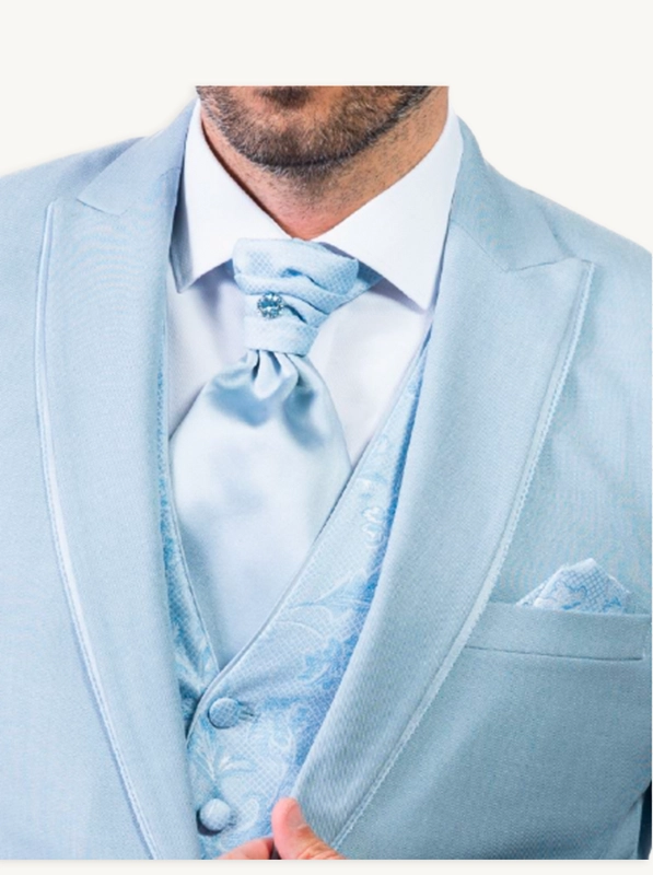 Traje de boda para novio Frederic – Azul celeste elegante con tejidos combinados