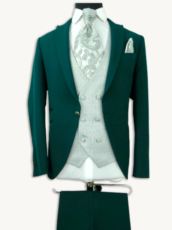Disponible únicamente en talla 50, este traje representa una oportunidad única para el novio que busca exclusividad y estilo. La combinación de colores y el corte moderno lo convierten en una inversión perfecta para tu gran día.